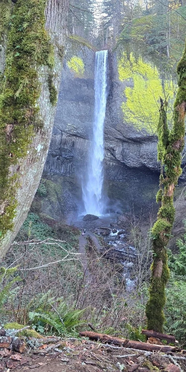 Latourell Falls in Guy W. Talbot State Park is open year-round for day-use, typically from 0600 to 1800 or 2200 depending on the season. No fees or permits are required for entry. The area is accessible daily, though the trail can be icy in winter and the area is best visited in spring for maximum flow.