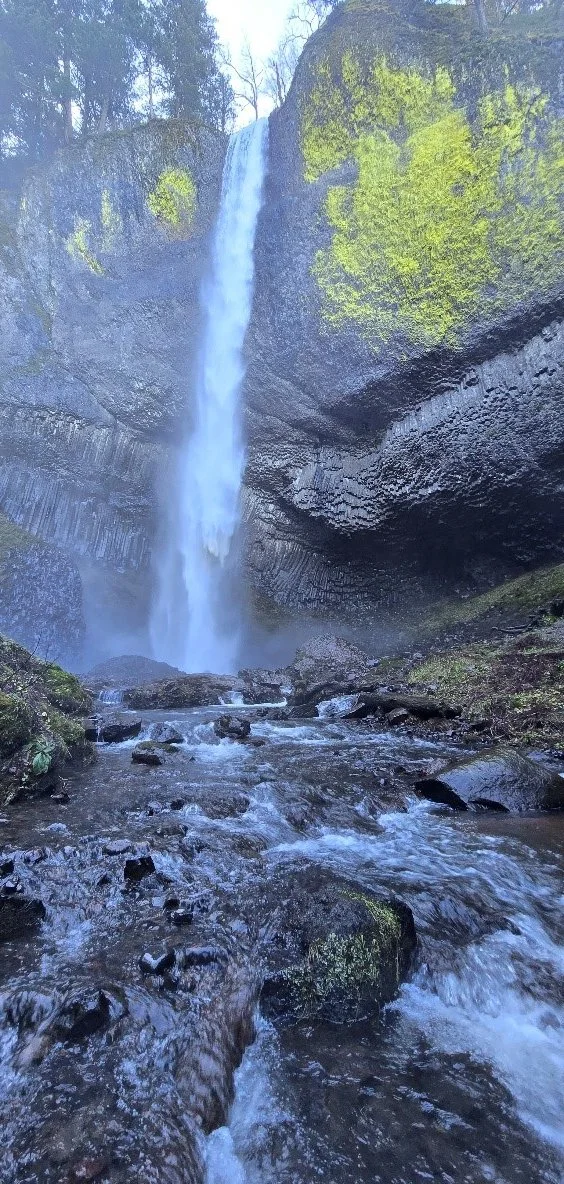 Latourell Falls is one of the first waterfalls you come across along the Columbia Gorge Scenic Highway. The falls plunge 224 feet over a massive wall of columnar basalt, some of the best formations in the Pacific Northwest. This waterfall is usually most recognized for the large patch of bright yellow lichen decorating the cliff face to the right of the falls.