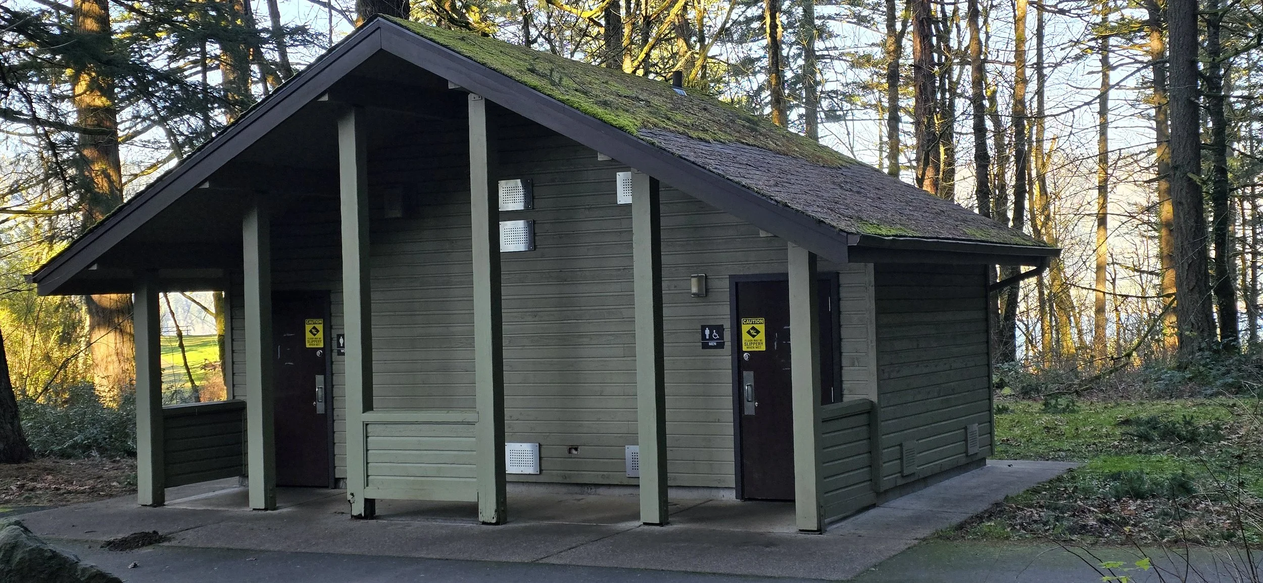 Once you park, go east, and you will find an entrance for the two trails close to the restrooms. There is restroom on the East side of the Parking lot.